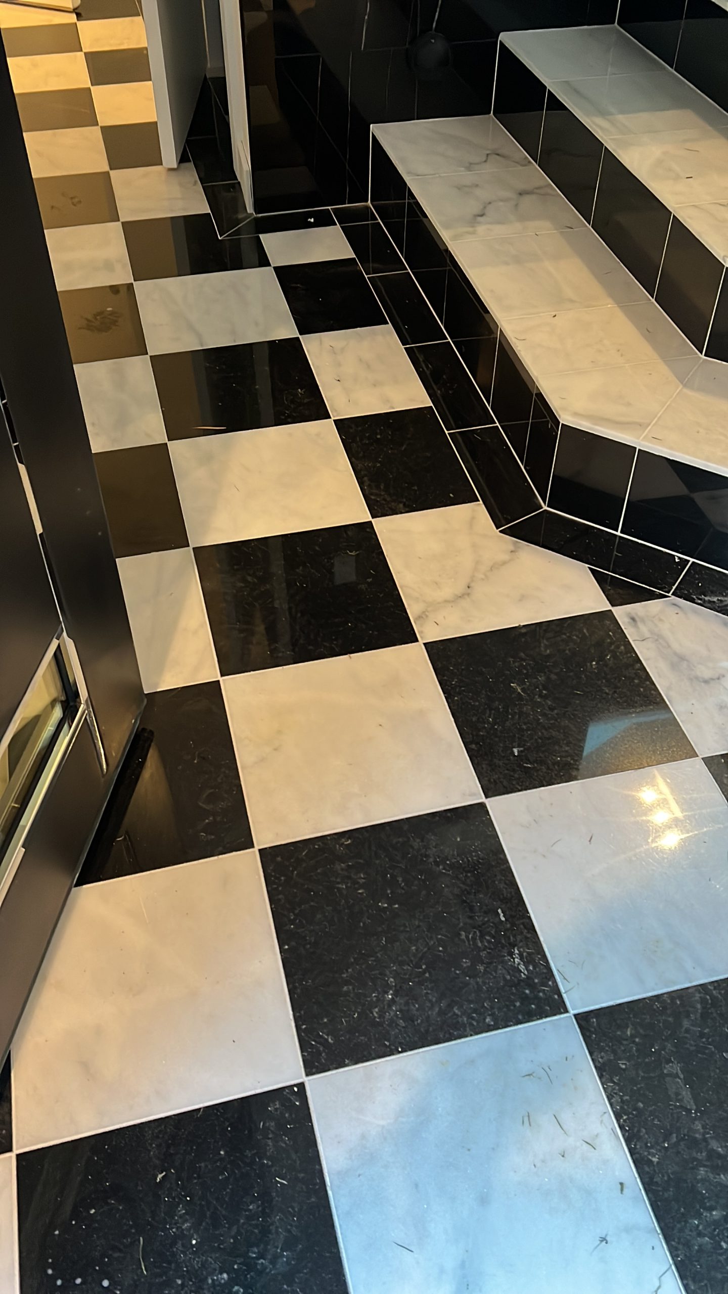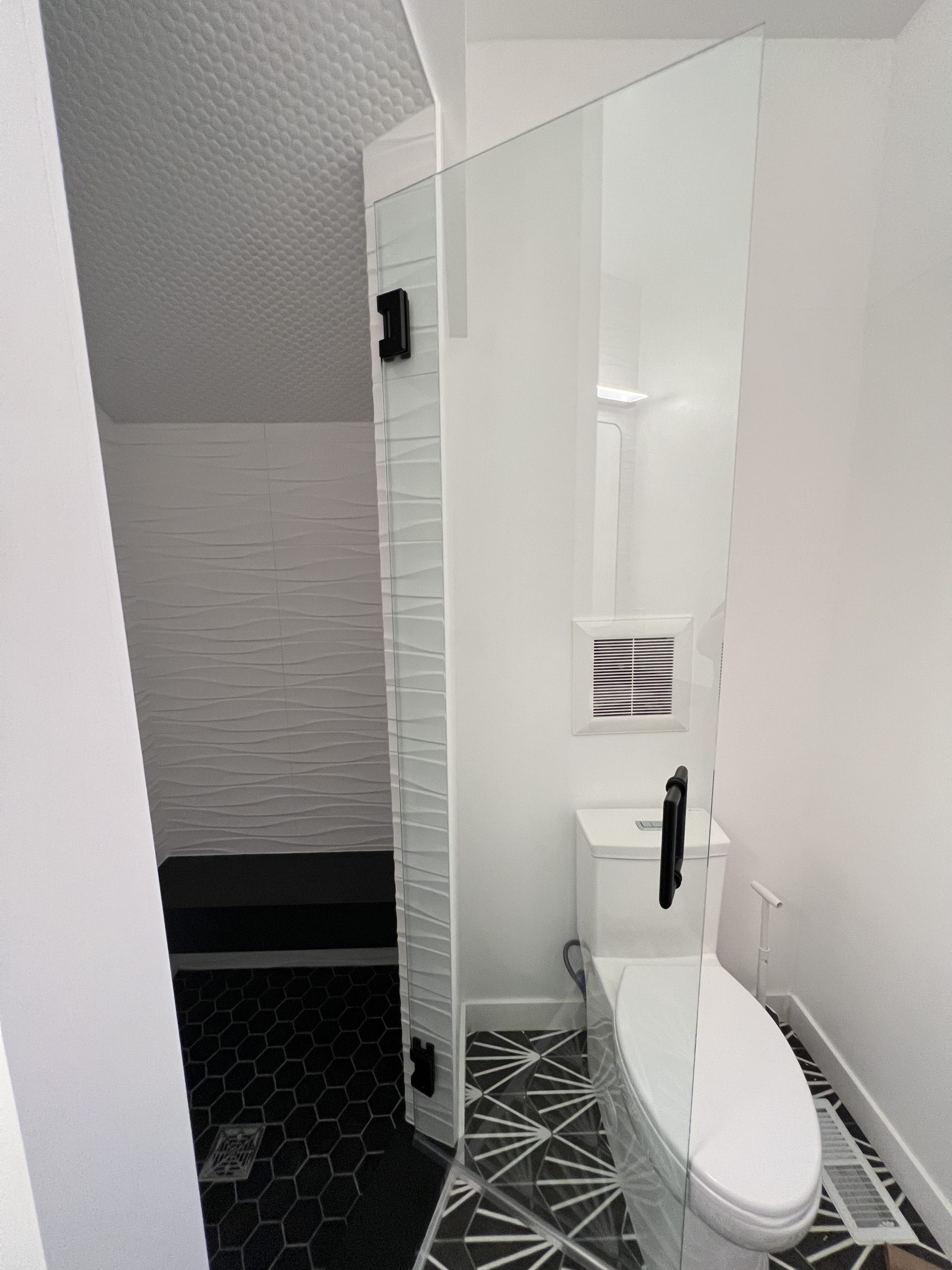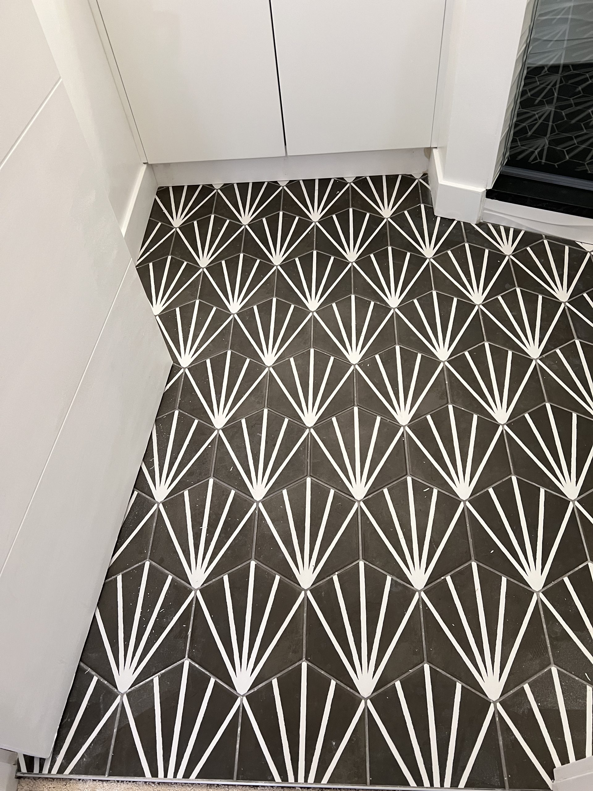 Feature tile walls and geometric flooring